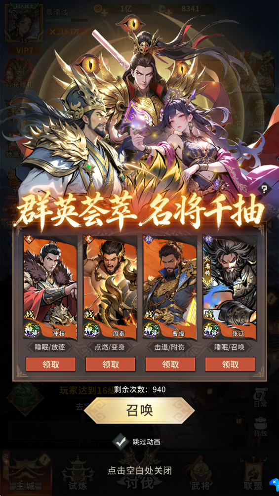 登录即送千次招募机会,名将任您挑选,开局阵容自由搭配。