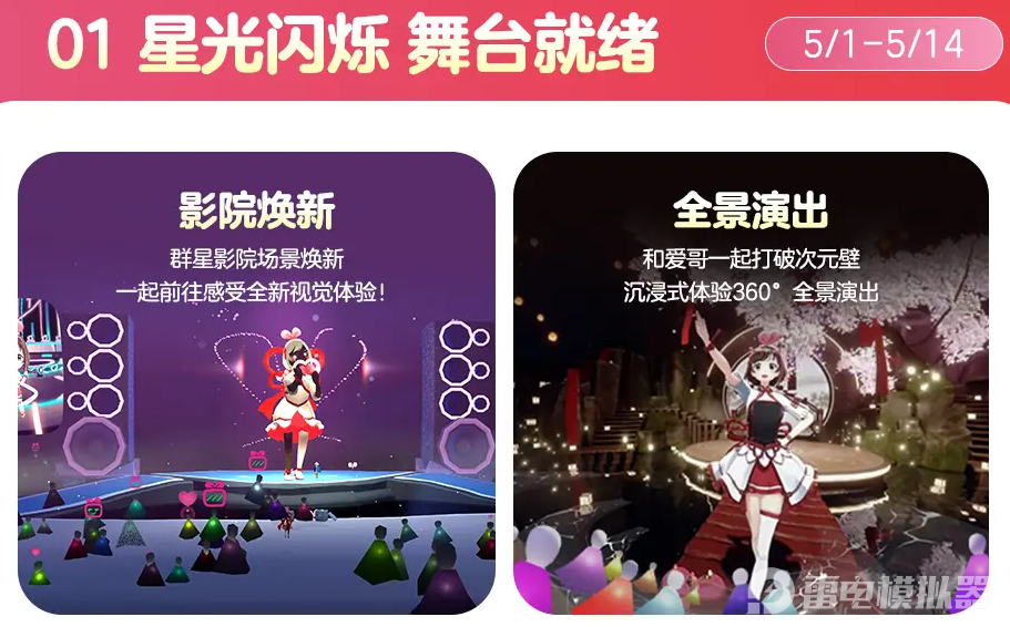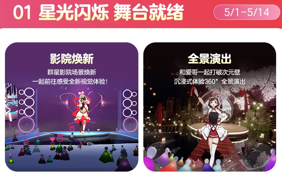 5月1日20:00将开启首场直播演出,爱哥会亲临现场,与光之子们互动玩耍,还会邀请幸运旅人上台并肩互动;演出期间,跟随游戏内指引为爱哥应援,随着应援声渐强,还能解锁“爱心爆炸”的专属纪念画面。首场演出结束后,爱哥的身影会化为特别“留影”,陪伴大家参与每4小时一次的循环演出。