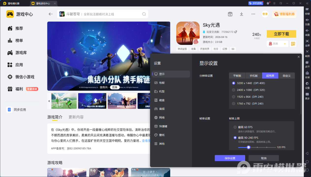 了解完光遇中国绊爱联动活动内容,想要更好地参与其中,推荐用雷电模拟器游玩。
