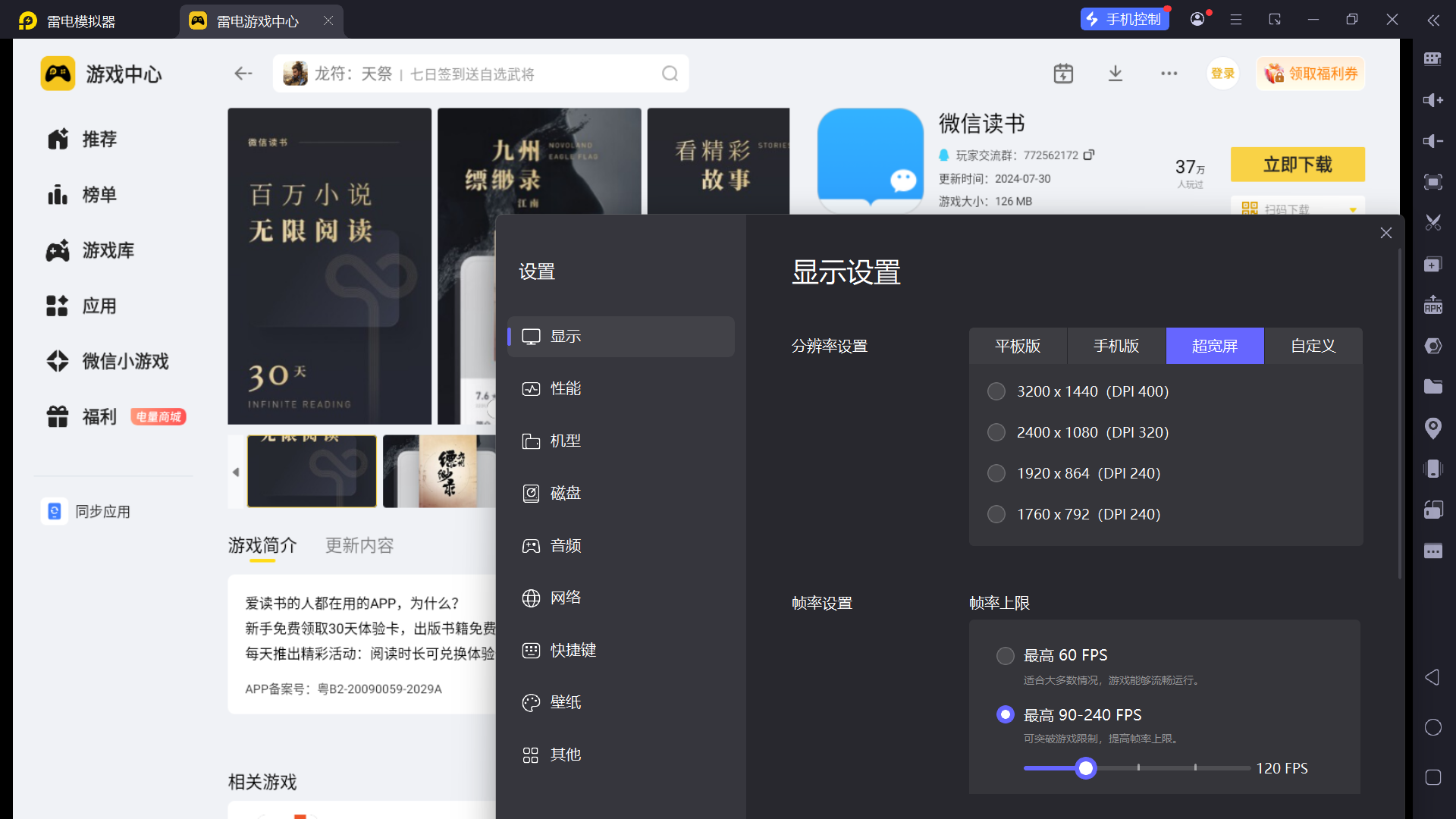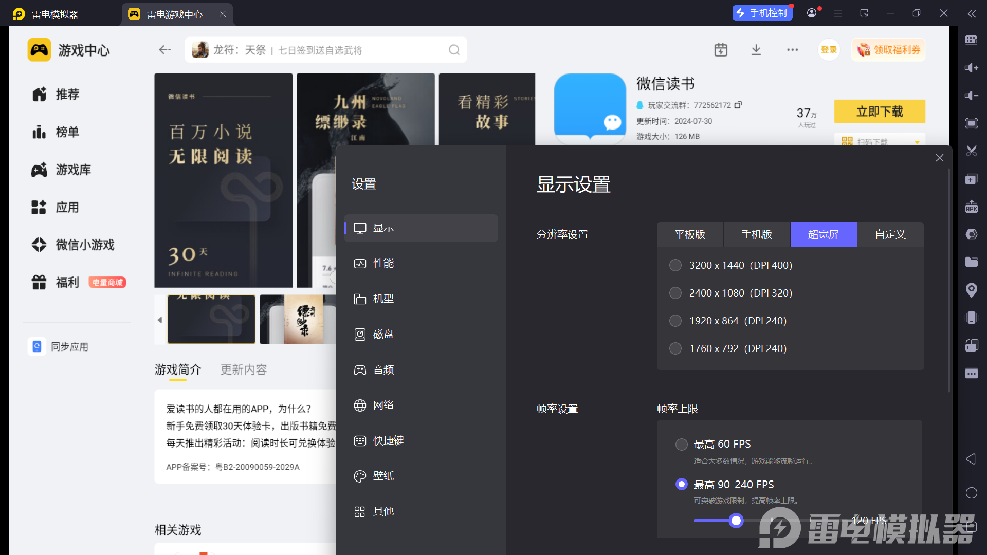雷电模拟器——微信读书电脑版的好帮手