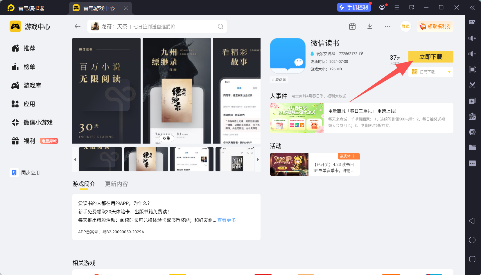 以上就是微信读书电脑版的下载方法,想要在电脑上更顺畅地阅读,使用雷电模拟器下载微信读书是最省心的选择。