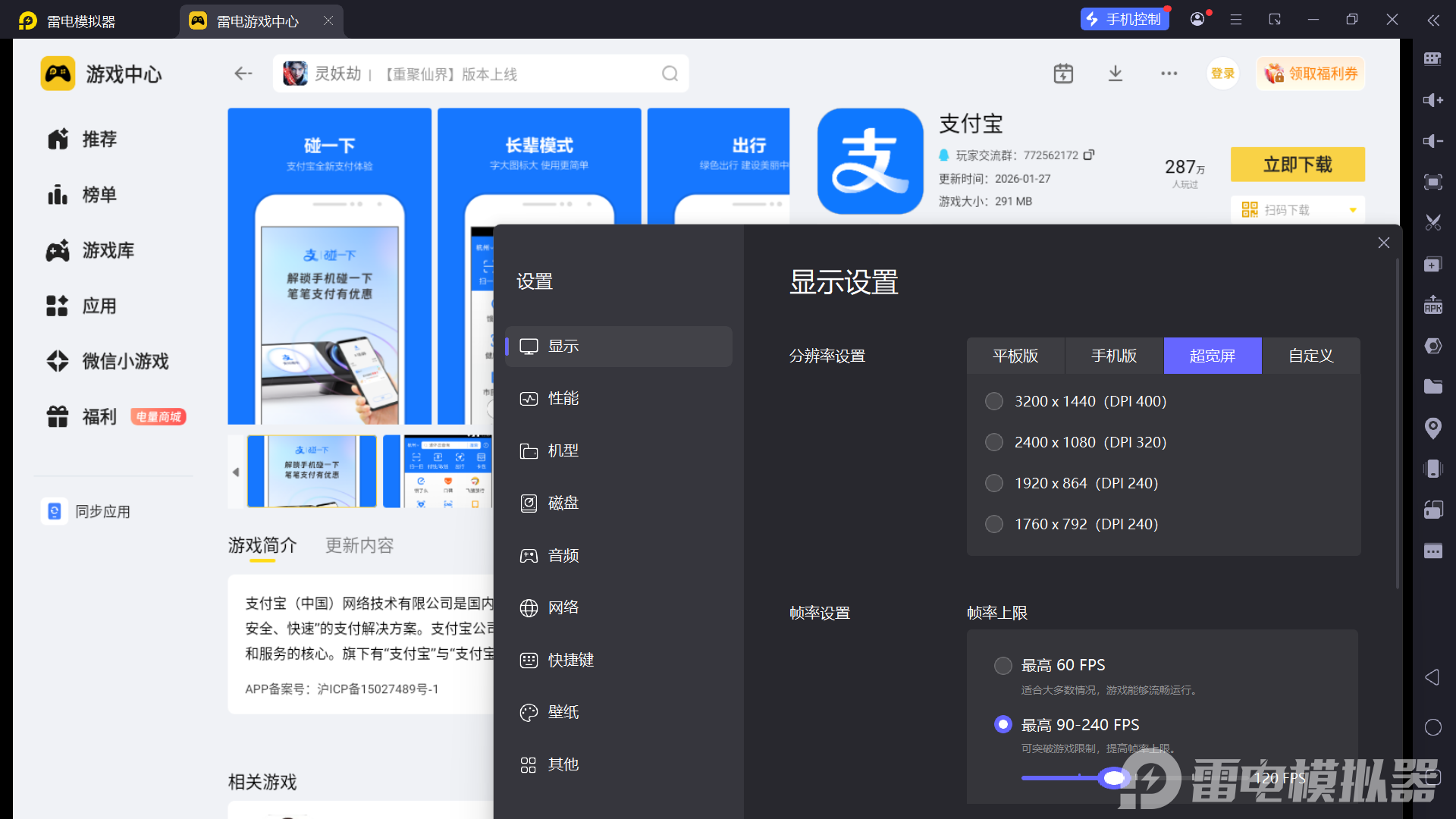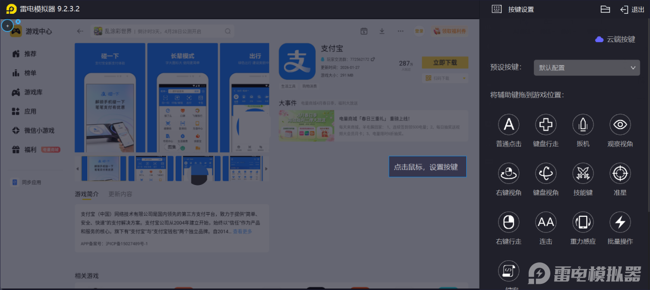 通过模拟器在电脑上运行支付宝,能够大大提高处理效率,这里推荐使用雷电模拟器。