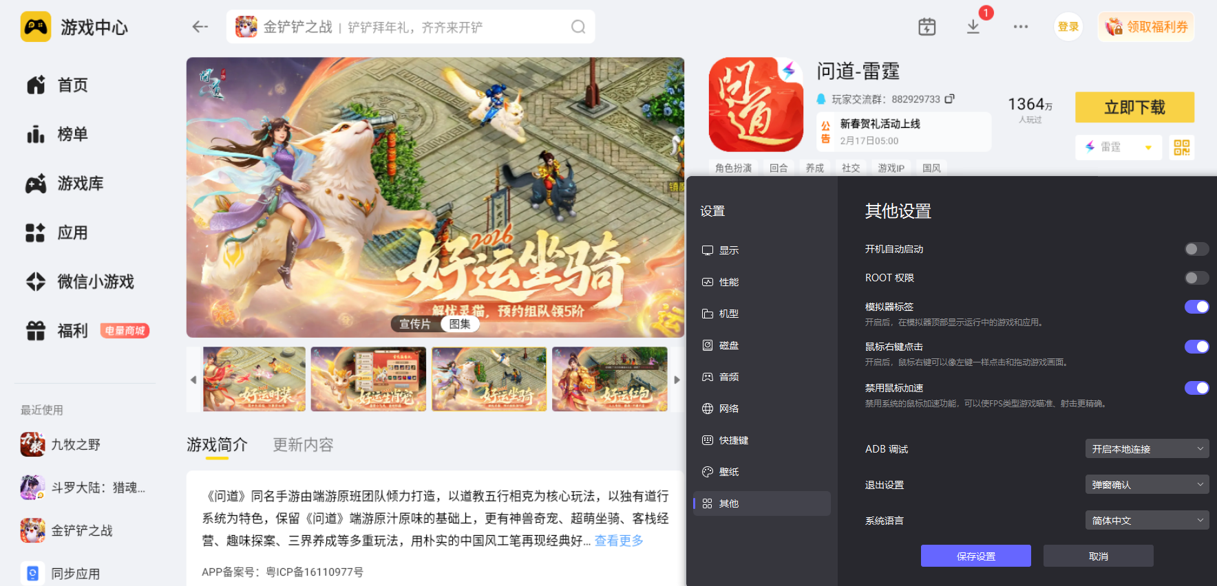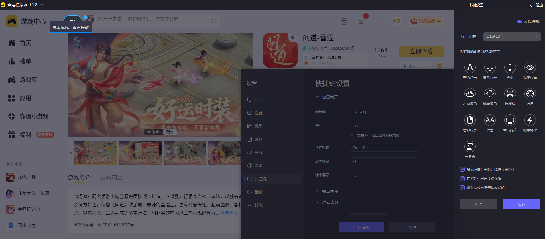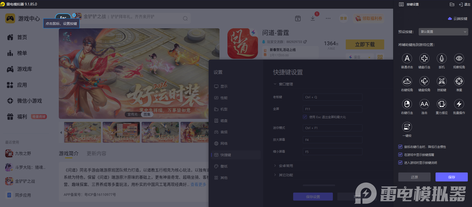 雷电模拟器的操作优势特别明显,玩问道手游时格外顺手。它支持键盘和鼠标自定义按键,玩家可以按自己的习惯设置移动、技能按键,释放技能、走位探索都更精准,不会出现触屏误触的情况。不管是做日常任务还是打副本,操作都更轻松高效。