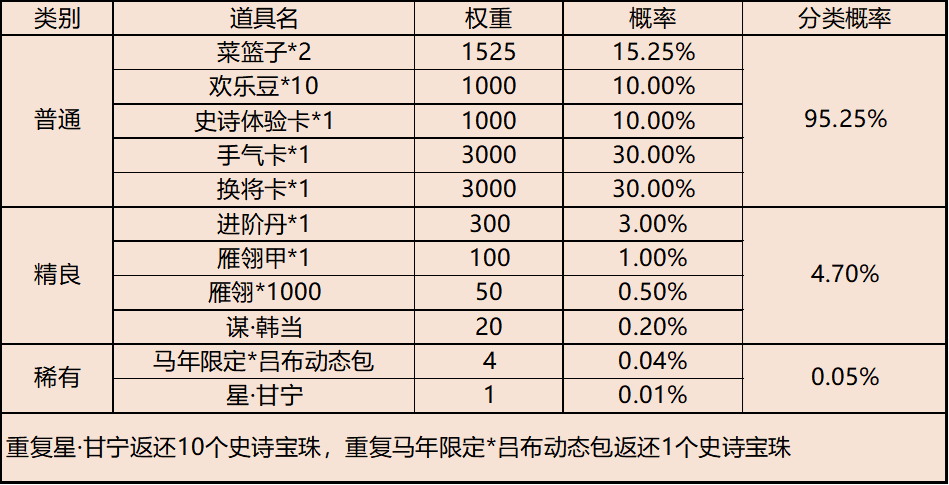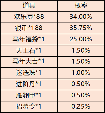 【马年红包】掉落道具概率如下:
