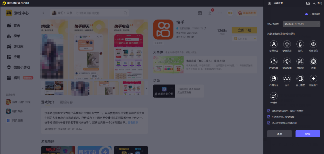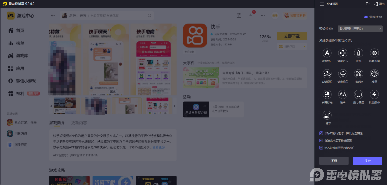 以上就是关于快手电脑版的使用介绍,想要在电脑上流畅刷快手或快手极速版、做账号运营,推荐使用雷电模拟器。