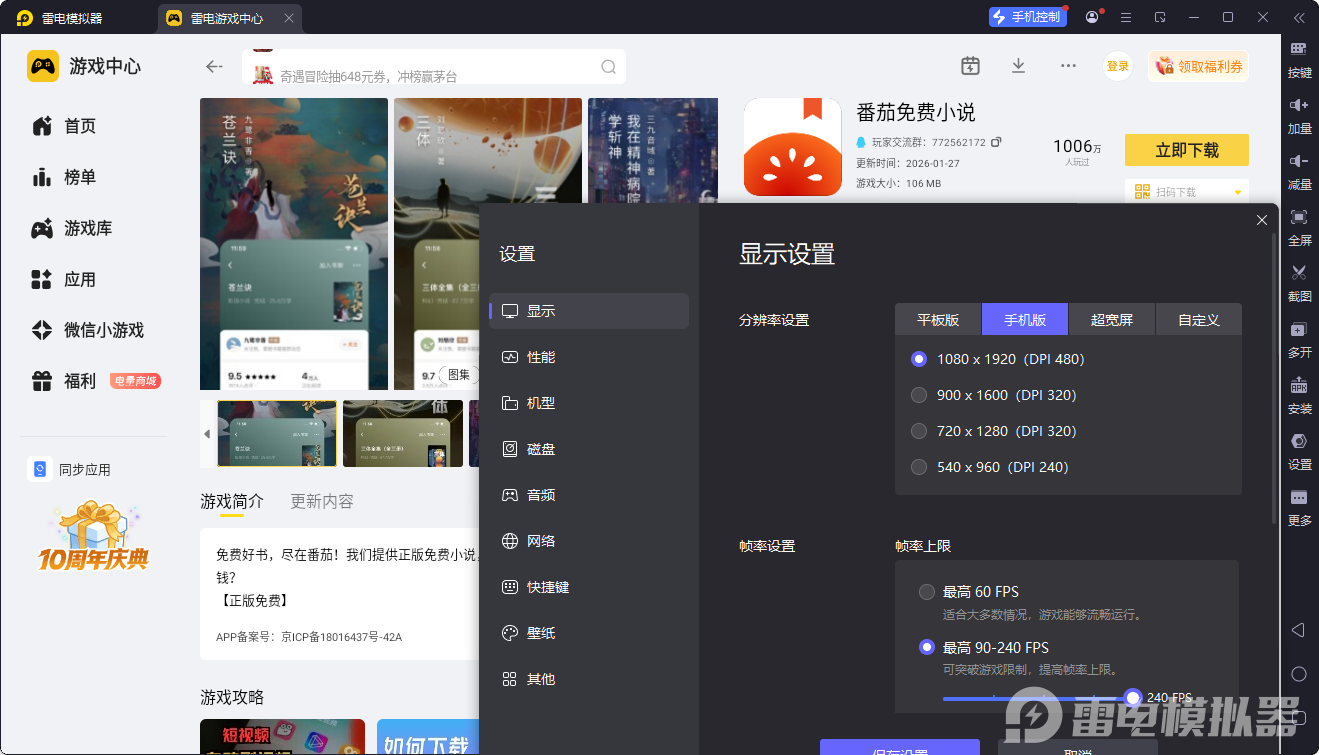 雷电模拟器——番茄免费小说电脑版的好帮手