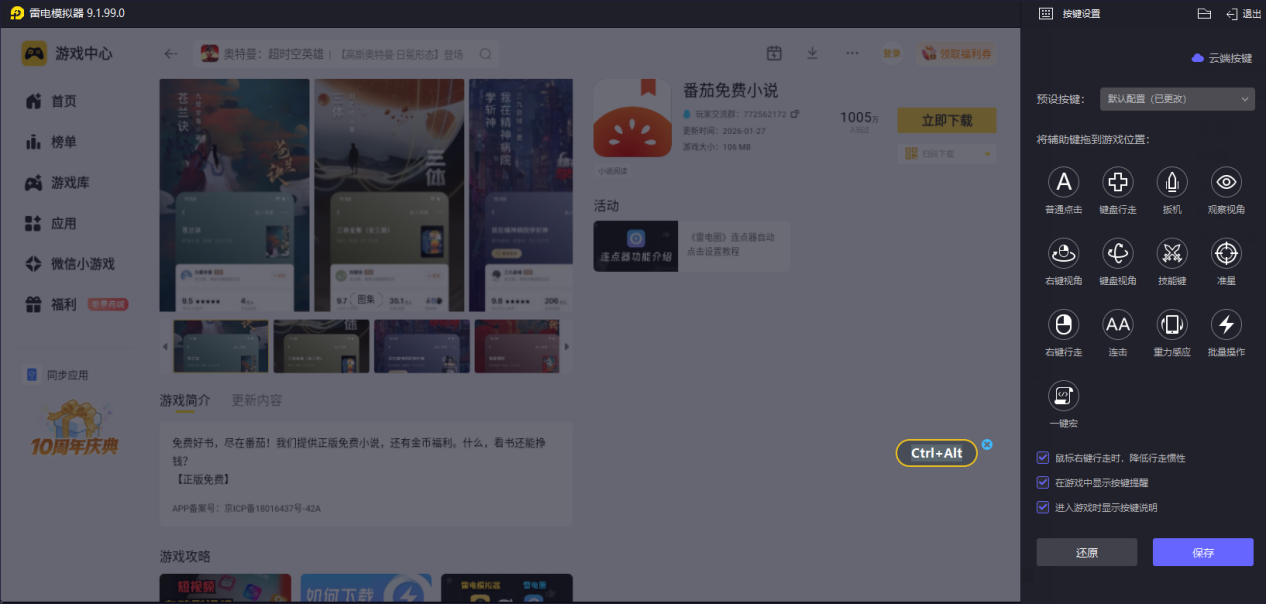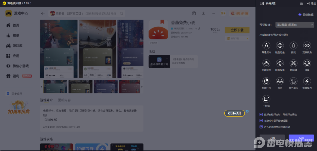 雷电模拟器能智能匹配番茄免费小说手机端键位,还支持自定义设置,用鼠标滚轮就能轻松翻页,操作比手机更灵活,不管是浏览章节还是切换书籍,都能快速上手,让番茄免费小说电脑版的使用更省心。