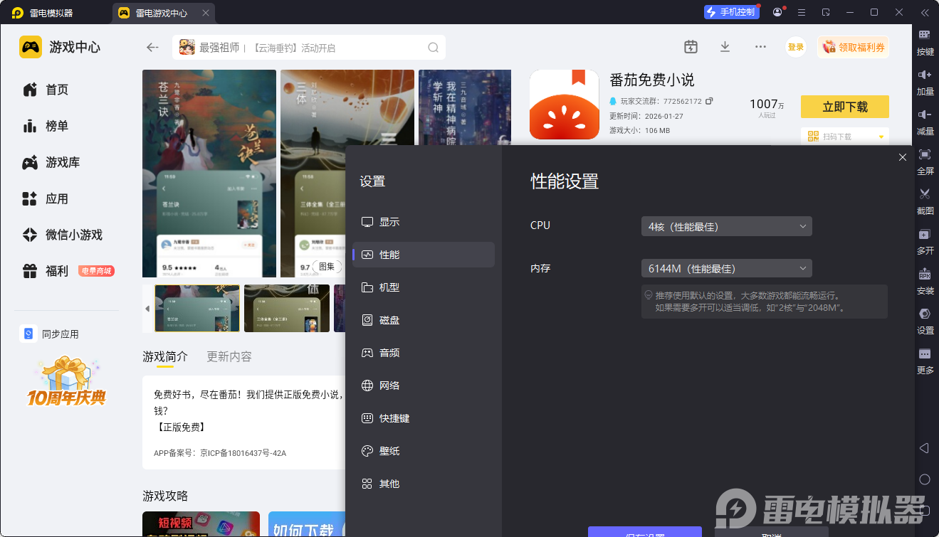 雷电模拟器——番茄免费小说电脑版的好帮手