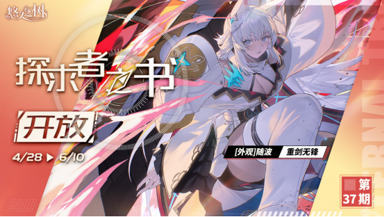 4月29日-6月10日,探求者之书第37期即将开放。解锁【进阶记录】并达到指定等级后,可获得随波的焕新外观[重剑无锋]与更多道具奖励!