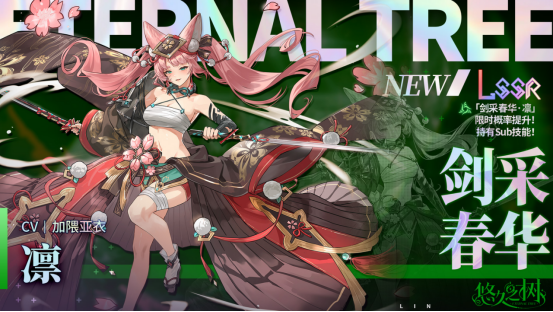 4月8日 维护后 - 4月29日 12:00,「剑采春华·凛」限时UP许愿池即将上线。全新风属性LSSR稀有度角色「剑采春华·凛」可在本许愿池邂逅获得,且邂逅概率限时提升!