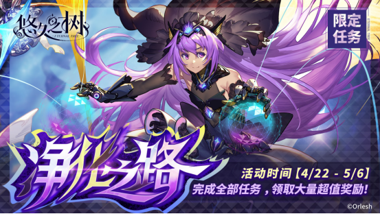 4月22日 维护后 - 5月6日 12:00,探求者大人完成指定任务,即可在【净化之路】活动面板领取限时许愿券·逆光序曲、星绚之愿·套组、绚晶石以及大量超值道具奖励!