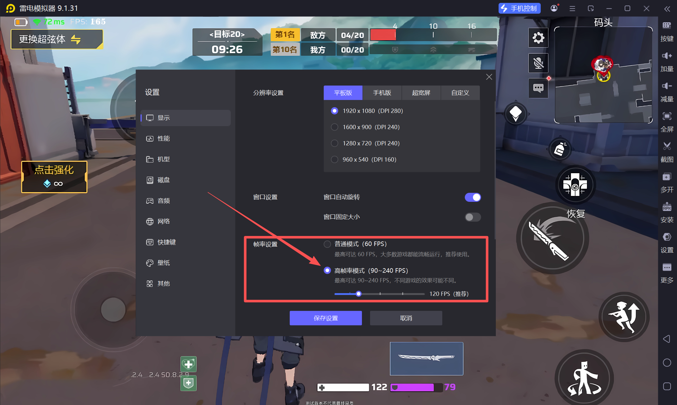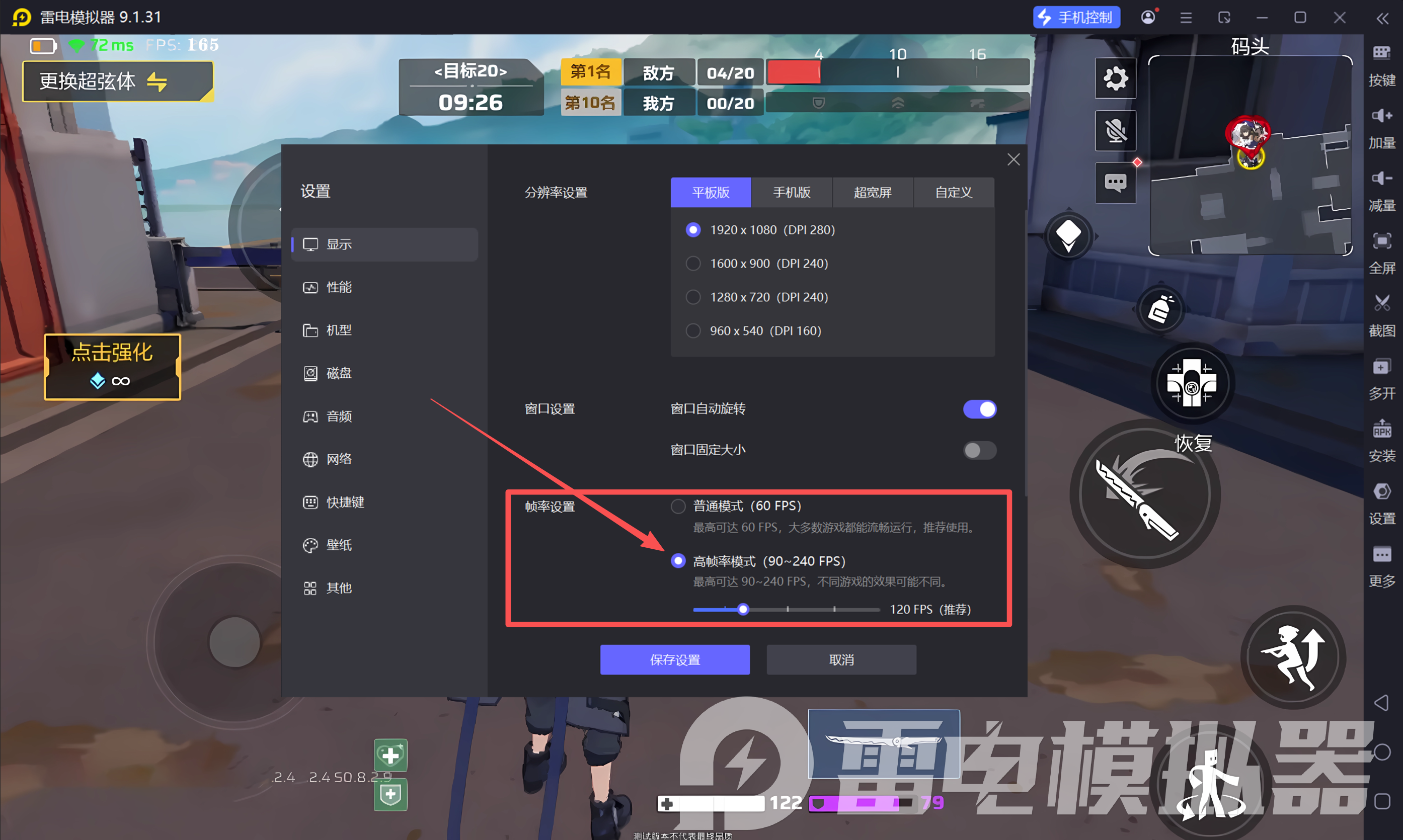 超高帧率:卡拉彼丘用手机玩低帧率下经常打不中人。雷电模拟器的165高帧率显示就能完美解决这类问题, 无论是敌人借助 “弦化” 沿墙体快速滑铲,还是载具加速时周围环境的动态模糊效果,都能以超高流畅度呈现。