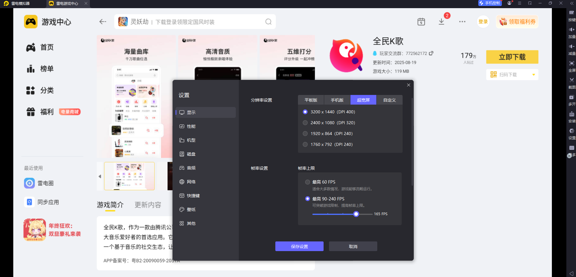 想要下载全民K歌模拟器,最靠谱的方式就是先通过雷电模拟器官网下载正版模拟器,安装后在模拟器的雷电游戏中心搜索“全民K歌”,就能直接下载安装使用,全程安全无捆绑。不管是独自练歌还是和亲友线上嗨唱,都能解锁更棒的K歌体验,赶紧试试吧!
