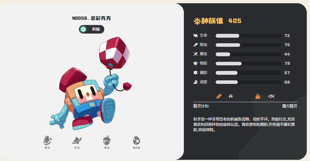 一定有不少玩家好奇洛克王国世界多彩方方怎么进化,该精灵是编号为56号的精灵,本身为精灵进化的第二阶段,在它之前为多彩方方,可以依靠特殊任务获取,前期的获取手段不多所以异常珍贵,一定有不少小伙伴需要洛克王国世界多彩方方养成攻略,接下来就为大家分享一下这个精灵的进化以及养成的经验,感兴趣的一起来了解一下吧。