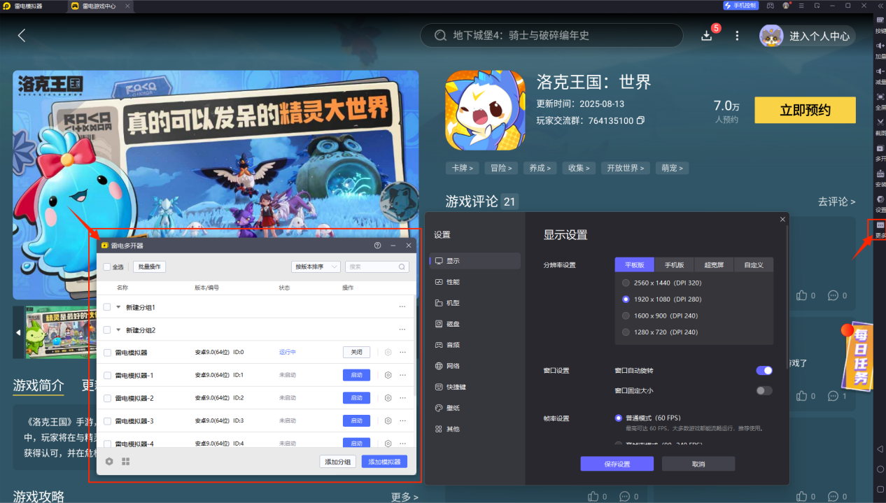 建议大家使用雷电模拟器游玩这款游戏,雷电模拟器专区为大家准备了游戏专属群聊,大家可以在里面快速找到喜欢这款游戏的玩家,一起加好友游玩,分享大世界资源,或者分享精灵果实。雷电模拟器游玩游戏的性能优越,稳定165帧数,大场面不掉帧,大世界探索更爽快,画面1080p及以上画质都,还有超宽屏,增加各位的视觉体验。