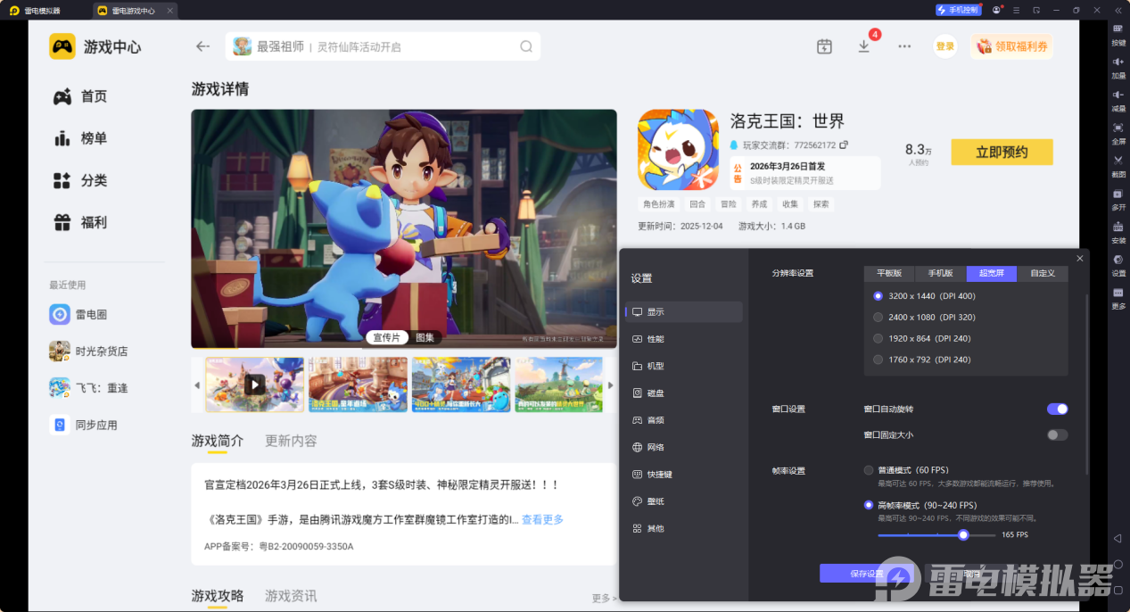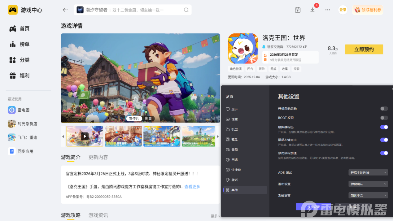 用雷电模拟器玩《洛克王国世界》刷闪,画面体验会明显升级。模拟器的4K高清大屏能完整展现精灵的炫彩特效,比手机屏幕看得更清楚,不管是稀兽花种的特殊标识,还是闪光精灵的异色外观,都能快速识别,不会因为画面太小错过目标。