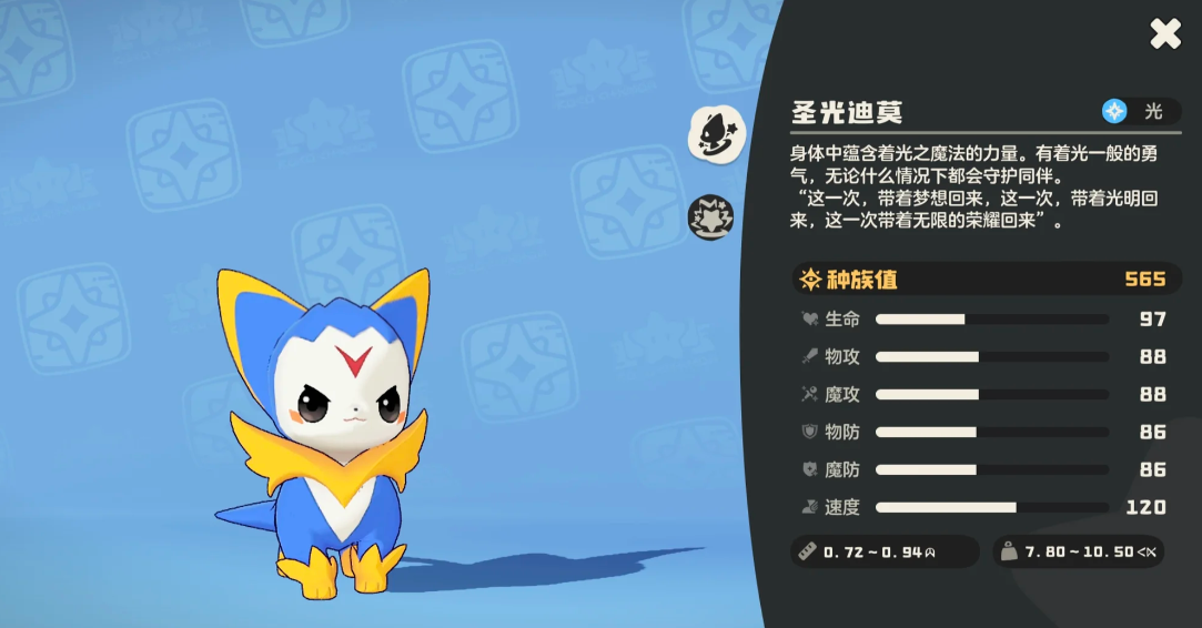 迪莫的进化与培养路径友好,30级可使用水之进化石进化,最终形态圣光迪莫或皇家圣光迪莫战力大幅提升,适配PVE日常任务、徽章挑战与初级天梯赛。它还能融入光系速攻流阵容,与白金独角兽、圣光火娃联动,凭借高穿透伤害快速清场,是新手过渡与老玩家组建特色阵容的必备宠物。