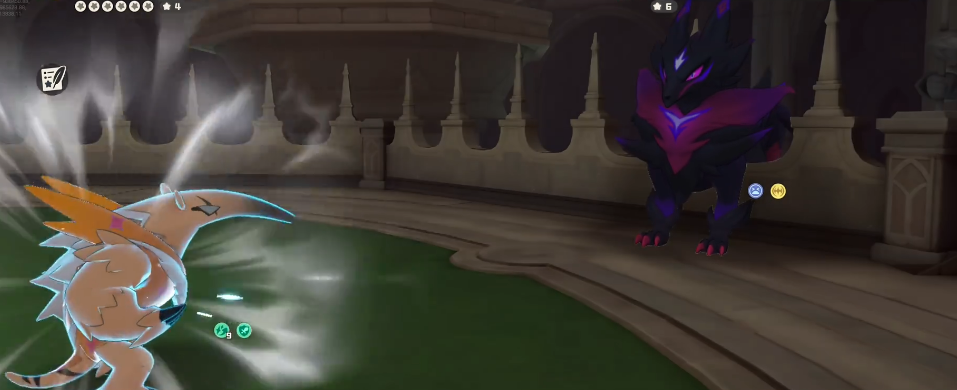 等到了二阶段的时候,boss所展现出来的恶系弱点也是很有必要利用的,我们可考虑去使用光系或者是武系的精灵,比如大家所熟知的格斗小六就是,可以去利用其登场眩晕效果快速压制血量。