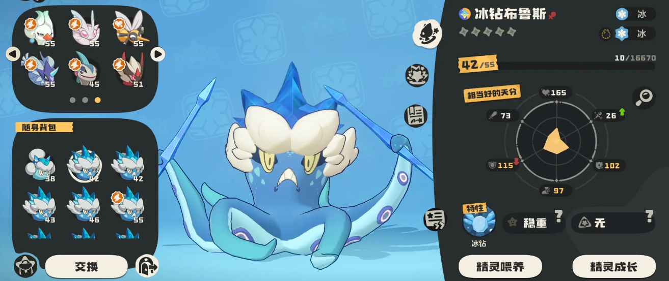 冰钻布鲁斯:这是人气以及呼声都比较高的精灵,能帮助玩家在深水区域触发破浪加速效果,提升直线行进的效率,十分适合短距离的水下冲刺。