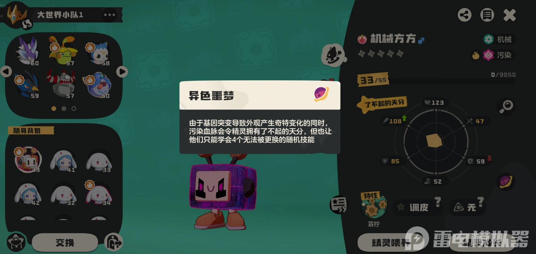 以上便是洛克王国世界方方队的全部说明,对于广大玩家而言,该精灵的阵容搭配上是比较灵活的,不过文中给到的思路还是可去参考一番,而且结合雷电模拟器使用,能让自身的战斗表现更加出色哦。