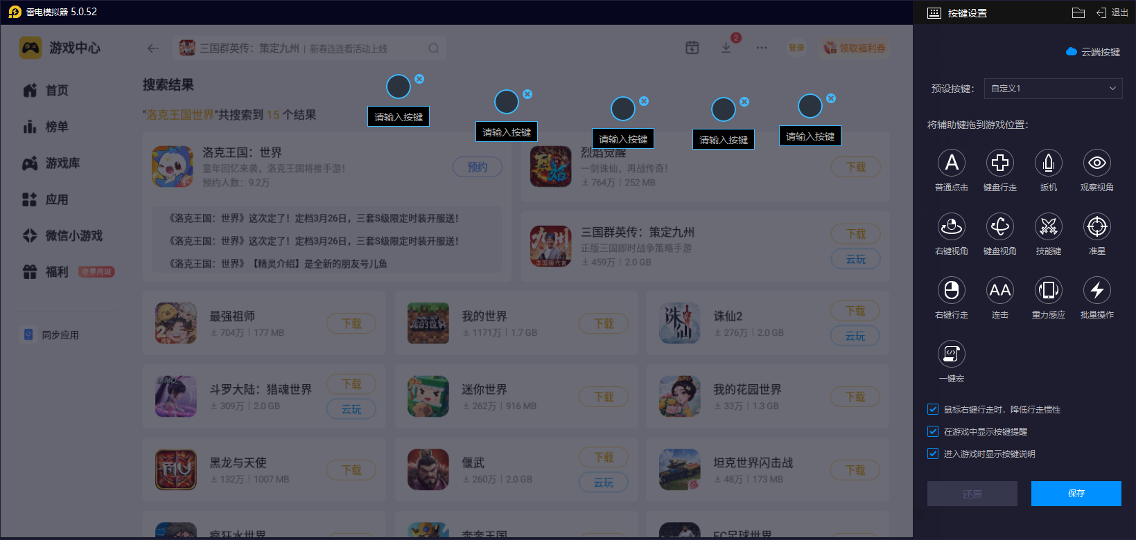 我们在开荒期的时候,核心操作应集中在宠物捕捉、技能释放,而雷电模拟器支持键位自定义功能,玩家可以把捕捉精灵球、技能快捷键绑定至键盘,相比手机触屏而言也会更加的丝滑,同时精准度更高,避免因误触错失捕捉机会、延误战斗节奏,大幅提升捕捉成功率。