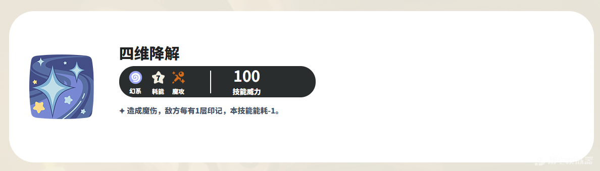 疾光千兽推荐技能搭配为光束聚集、逆光、魔法增强与四维降解,这套组合能充分发挥其爆发输出与残局收割能力。光束聚集可在开局提升10%魔攻,持续3回合;逆光能给敌方附加星陨标记,每层标记提升5%伤害。魔法增强作为辅助技能可蓄力增伤,四维降解则专门用于残血收割。连招顺序:首回合光束聚集→第二回合逆光/闪光冲击叠标记→第三回合魔法增强→残血用四维降解。