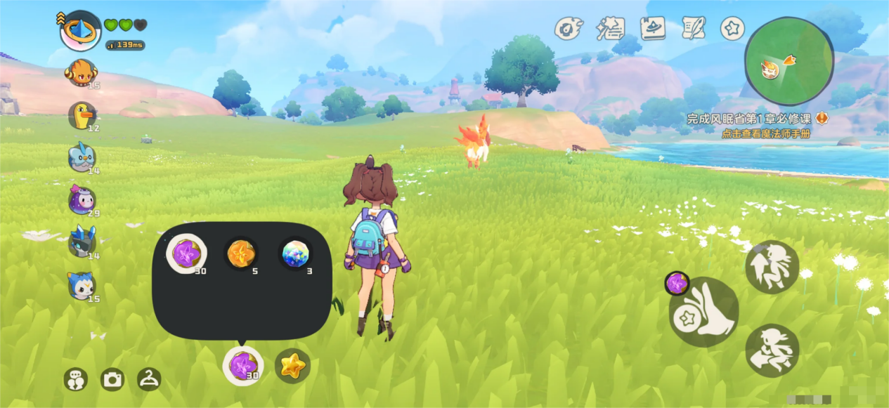 找到精灵后,抓捕成功率也很关键。一般推荐优先准备高级球或补光球。补光球是比较稳定的捕捉道具,即使等级差距较大也有较高成功率,非常适合用来抓稀有精灵。普通玩家如果没有补光球,可以使用高级球,只要目标等级在30级以内,捕捉成功率通常能达到较高水平。一个小技巧是先使用星星魔法或控制技能让目标进入眩晕或低血量状态,再进行捕捉。精灵处于异常状态时,捕获概率会明显提高,成功率会更加稳定。