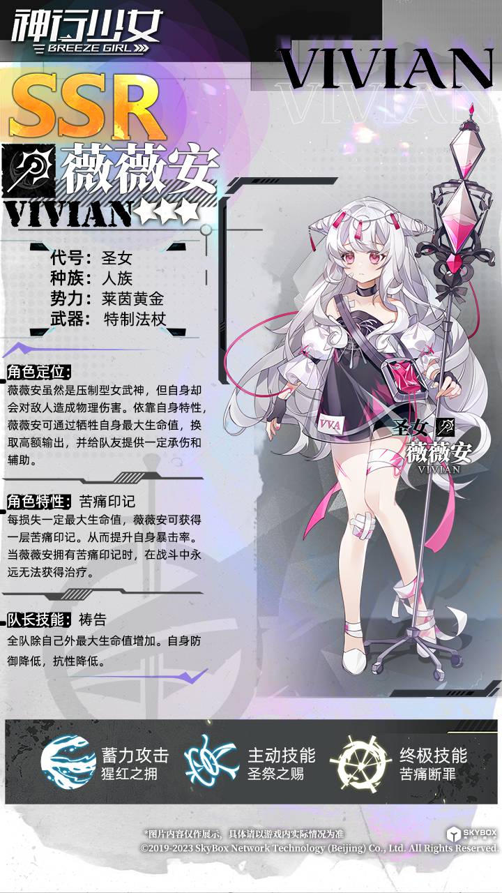 本次在歧点测试中登场的女武神——薇薇安,相信有不少主管对这个看似柔弱的女武神非常好奇,想知道她在战场上究竟表现如何。那么今天,我们就在本期战备室中,简单为大家介绍下薇薇安的技能。