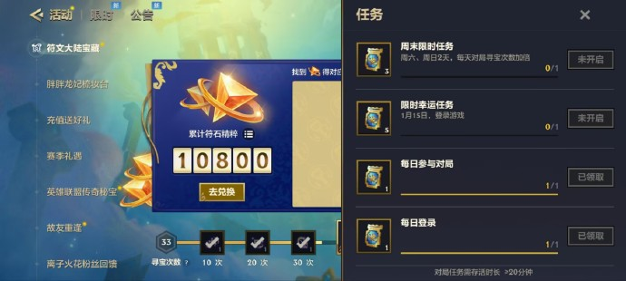 ◆活动日历◆ 符文大陆宝藏 限时幸运任务 开启啦🎉