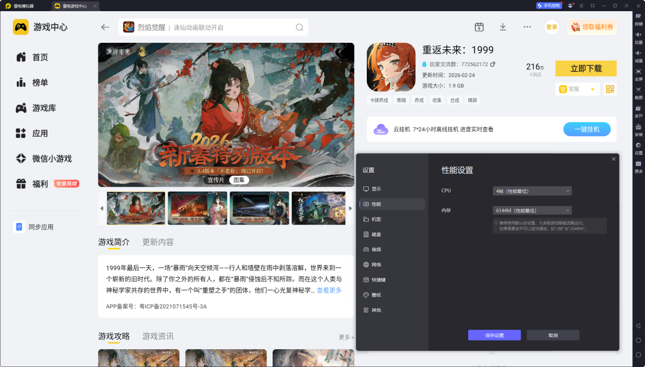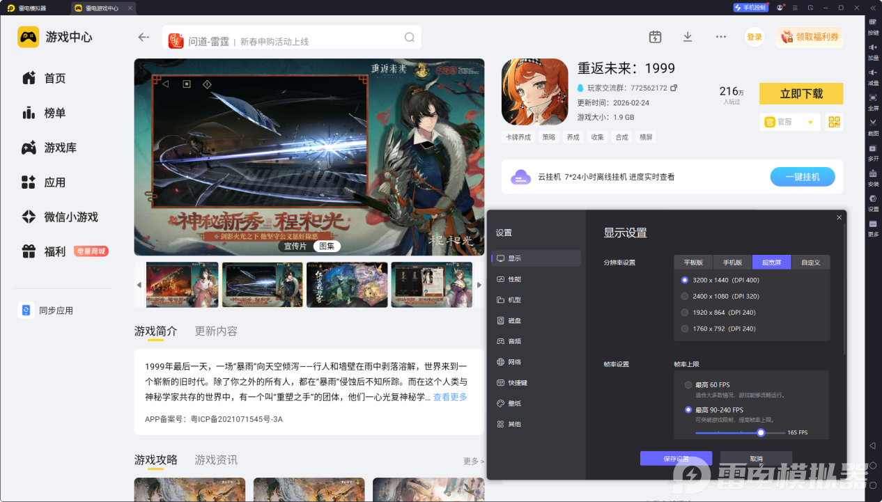 雷电模拟器适配重返未来1999全版本,运行过程中稳定流畅,不会出现卡顿、闪退等问题,即便长时间开启游戏、进行高强度副本挑战,也能保持稳定帧率,无论是操控拉莫纳参与联机副本,还是长时间挂机养成,都能轻松应对,彻底解决手机端发热、卡顿的困扰。