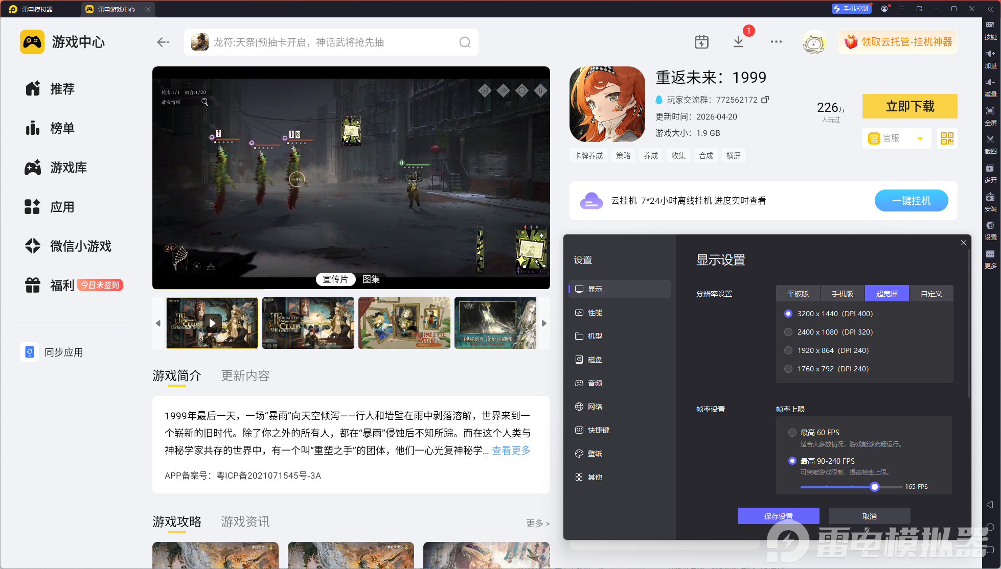 重返未来1999小瑞安侬是三周年全新登场的角色,是本次版本中强度十分亮眼的限定神秘学家。想要全面掌握重返未来1999小瑞安侬的核心玩法思路与最优配队方案,在各类高难副本中发挥稳定能力,推荐使用雷电模拟器。它拥有高清大屏与流畅精准的操作体验,能让你更清晰把控战斗节奏,完美放大角色的实战优势,轻松应对高压关卡。