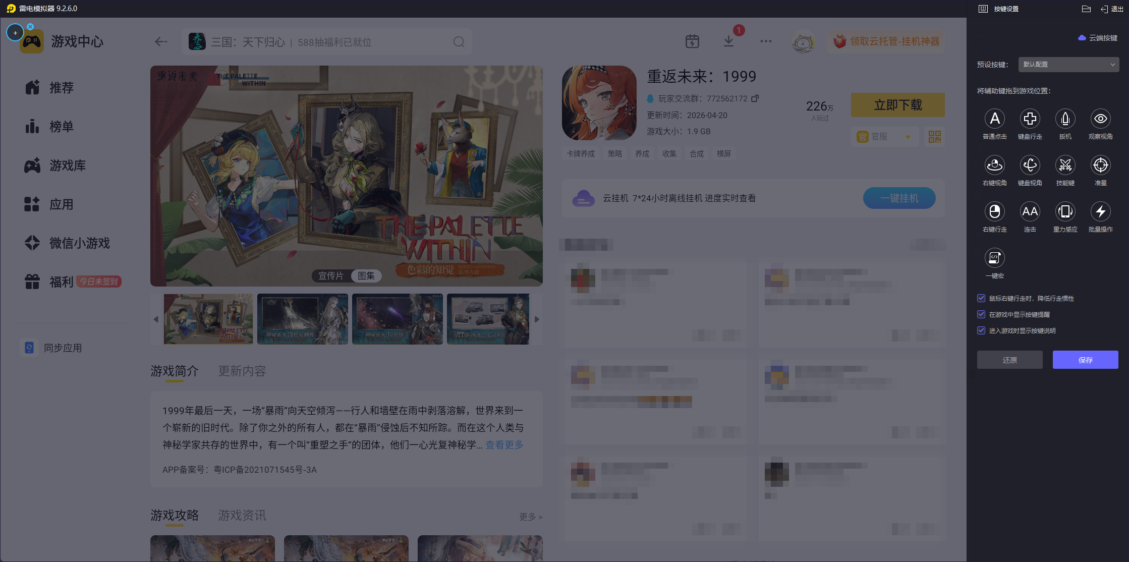 键鼠映射,操作释放更从容:雷电模拟器内置强大的键鼠映射系统,支持自定义按键布局,且延迟实测低于5ms。你可以把技能释放绑定到顺手的键盘按键上,用鼠标精准选取目标。在需要频繁切换角色释放技能时,键鼠操作比触屏滑动更为流畅,帮助你在瞬息万变的战斗中从容应对。
