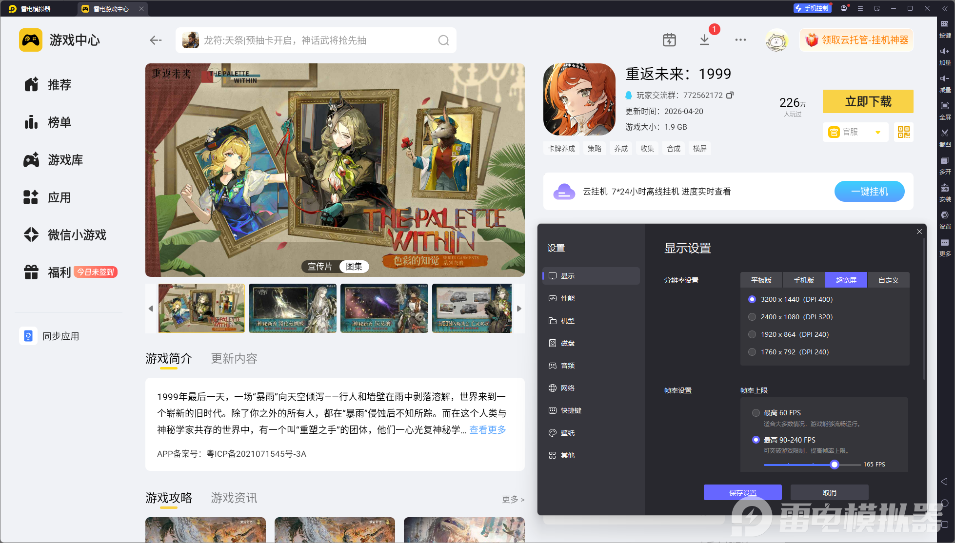 高清大屏,战斗细节尽收眼底:雷电模拟器支持最高4K分辨率和120帧的超高流畅度画面输出。在紧张的战斗中,高分辨率大屏能清晰展示每位角色的技能特效与受击判定,你可以清楚看到敌方的Buff图标、破甲状态的持续时间等关键信息,从而更精准地判断无名者的出场时机,避免错失最佳的破甲窗口期。