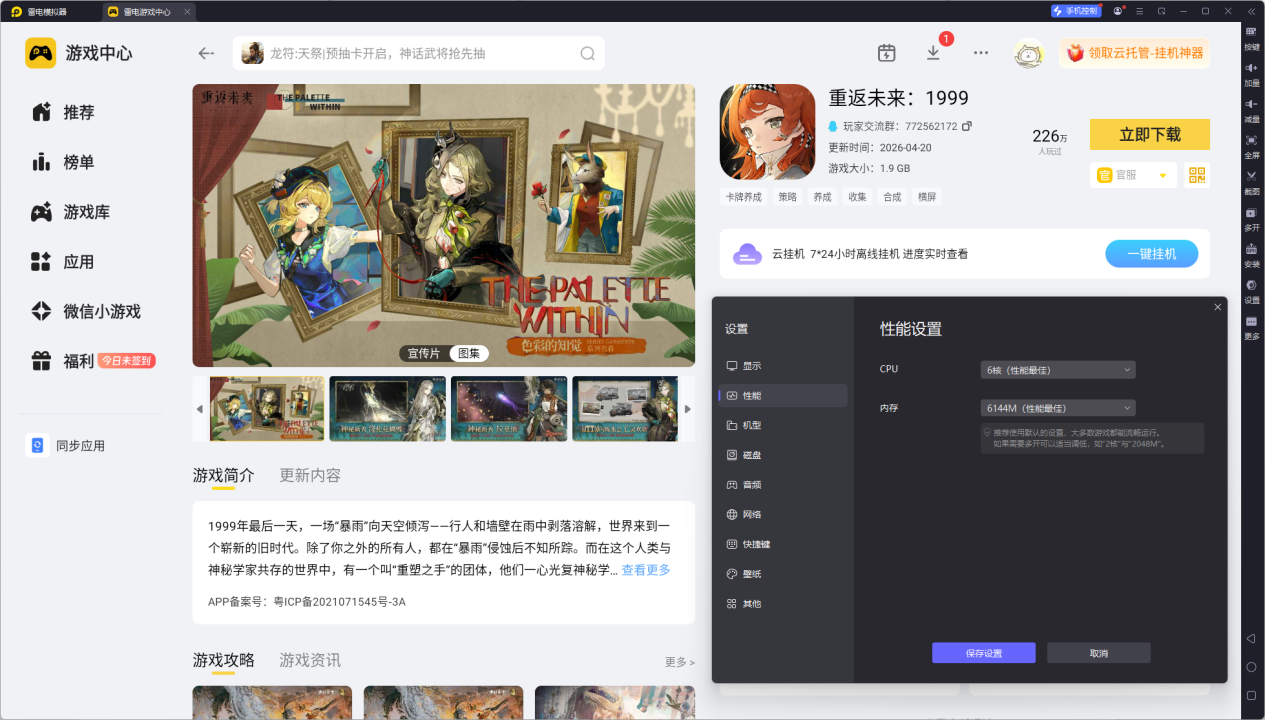 性能稳定流畅,长时间体验无压力重返未来1999珐琅眼的活动剧情长、战斗环节多,手机端容易出现卡顿、发热与耗电快的问题。雷电模拟器性能稳定,适配游戏所有功能,长时间运行也能保持流畅,不会出现闪退、掉帧情况,沉浸式体验完整剧情与战斗,轻松完成所有活动任务与养成目标。