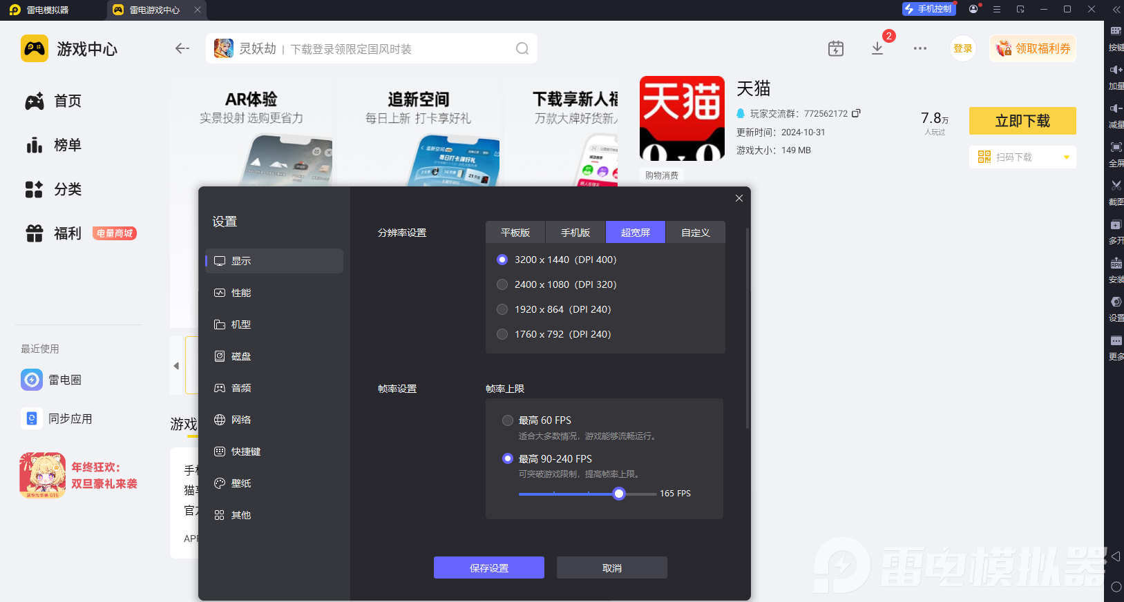 想要轻松使用天猫电脑版,雷电模拟器是性价比很高的选择,既能发挥天猫app的丰富功能,又能借助模拟器的画面和操作优势,让网购更高效舒心。不管是囤货、比价还是盯优惠,电脑端的体验都能满足需求,让每一次购物都省心又愉快。