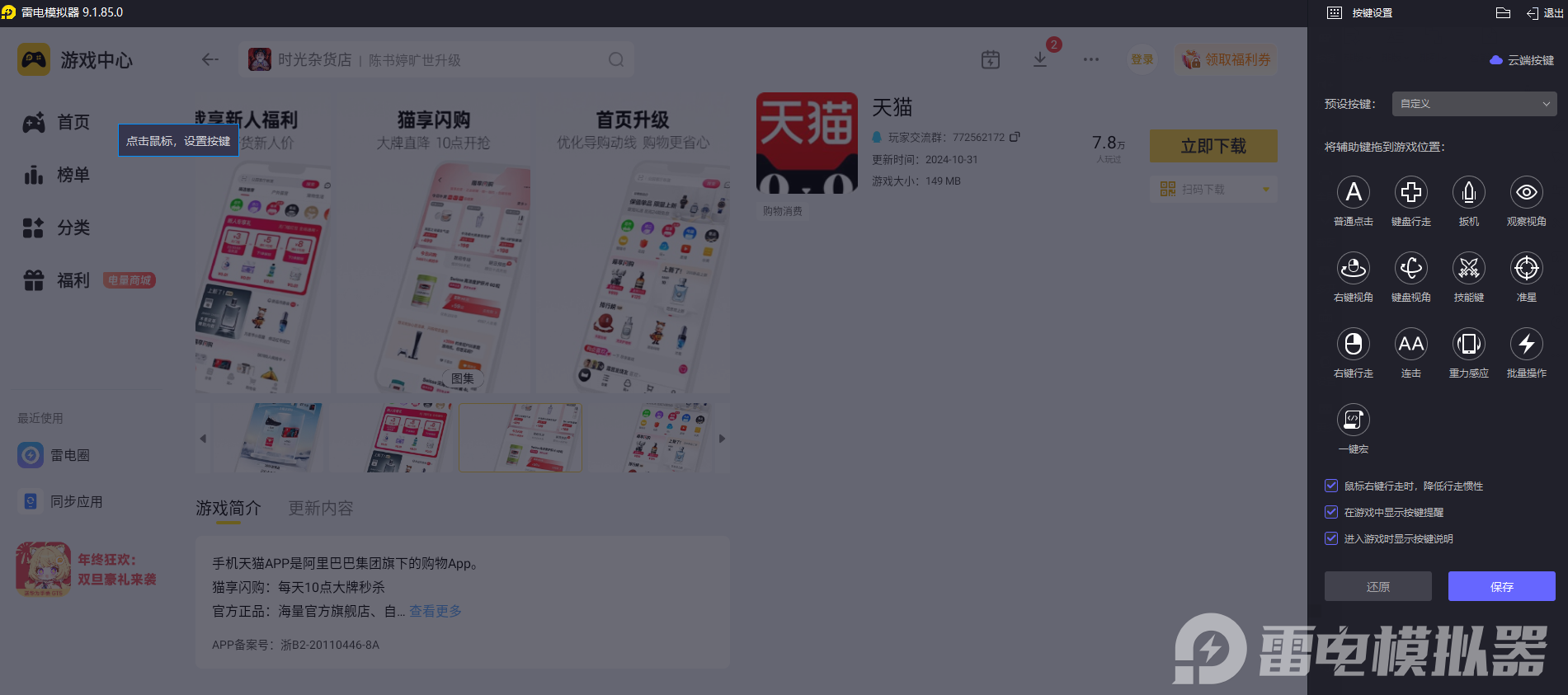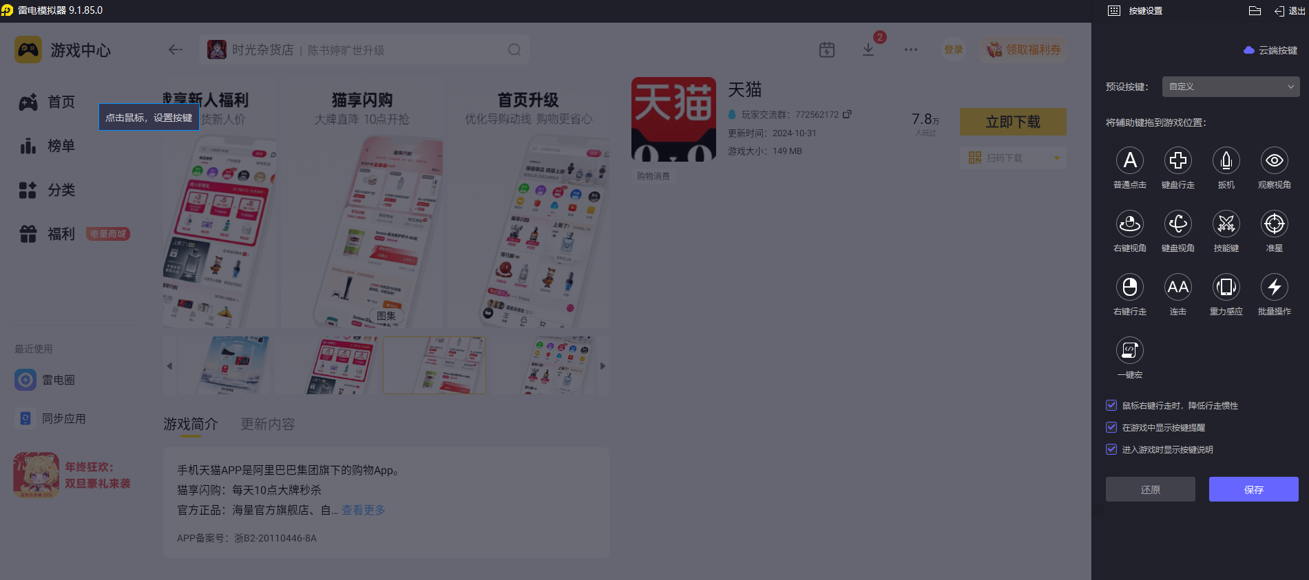 雷电模拟器的操作特别贴合电脑使用习惯,能设置键鼠映射,用鼠标点击商品、填写信息,精准又方便,比在手机上戳屏幕更顺手。还能自定义快捷键,比如快速切换页面、加入购物车,操作响应很快。不管是批量对比商品,还是长时间逛店下单,都不会觉得累。