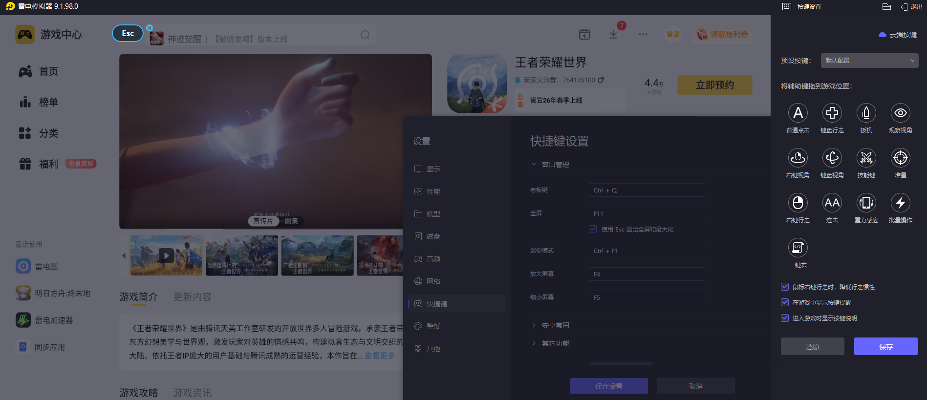 强攻型英雄大多依赖技能连招和精准命中,雷电模拟器的智能键位映射可自定义快捷键,比如将蒙犽的扫射设为长按键,东方曜的突进设为快捷键,彻底避免手机触屏误触。对于元流之子的武器切换和伽罗的持续射击更连贯,技能衔接更快,输出效率大幅提升。