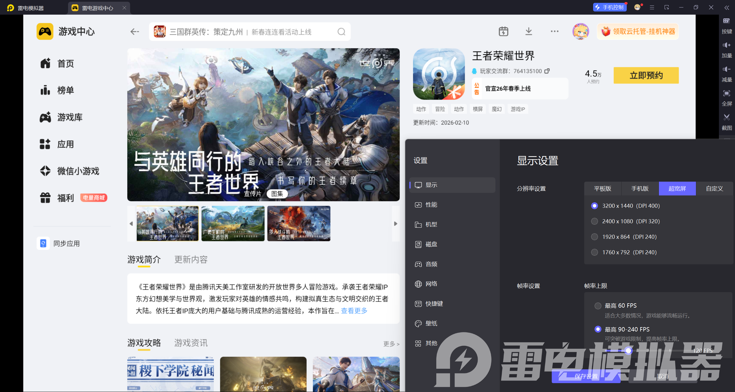 面对如此庞大的游戏,移动端受限于硬件发热和续航,体验难免打折。此时,雷电模拟器便成为PC玩家的优质选择——它不仅能发挥电脑高性能优势,还能让50GB+的王者荣耀世界在高清大屏上完美运行。