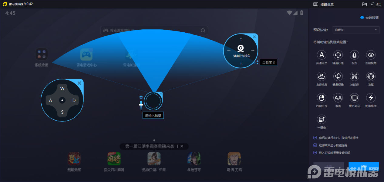 为了能让玩家到时候的战斗体验更好,小编的建议是去选择雷电模拟器,该软件不仅支持键鼠自定义,玩家更是能主动把移动、技能、唤灵等核心操作绑定至顺手按键,官方还预设了超多不同的方案,无需手动调试即可快速上手,无论是需要长按滑动释放的技能,还是复杂的英雄切换、连招衔接,都能通过键盘快捷键实现精准触发,比手机触屏操作更稳定,大幅降低误触率,让新手也能快速掌握基础操作。