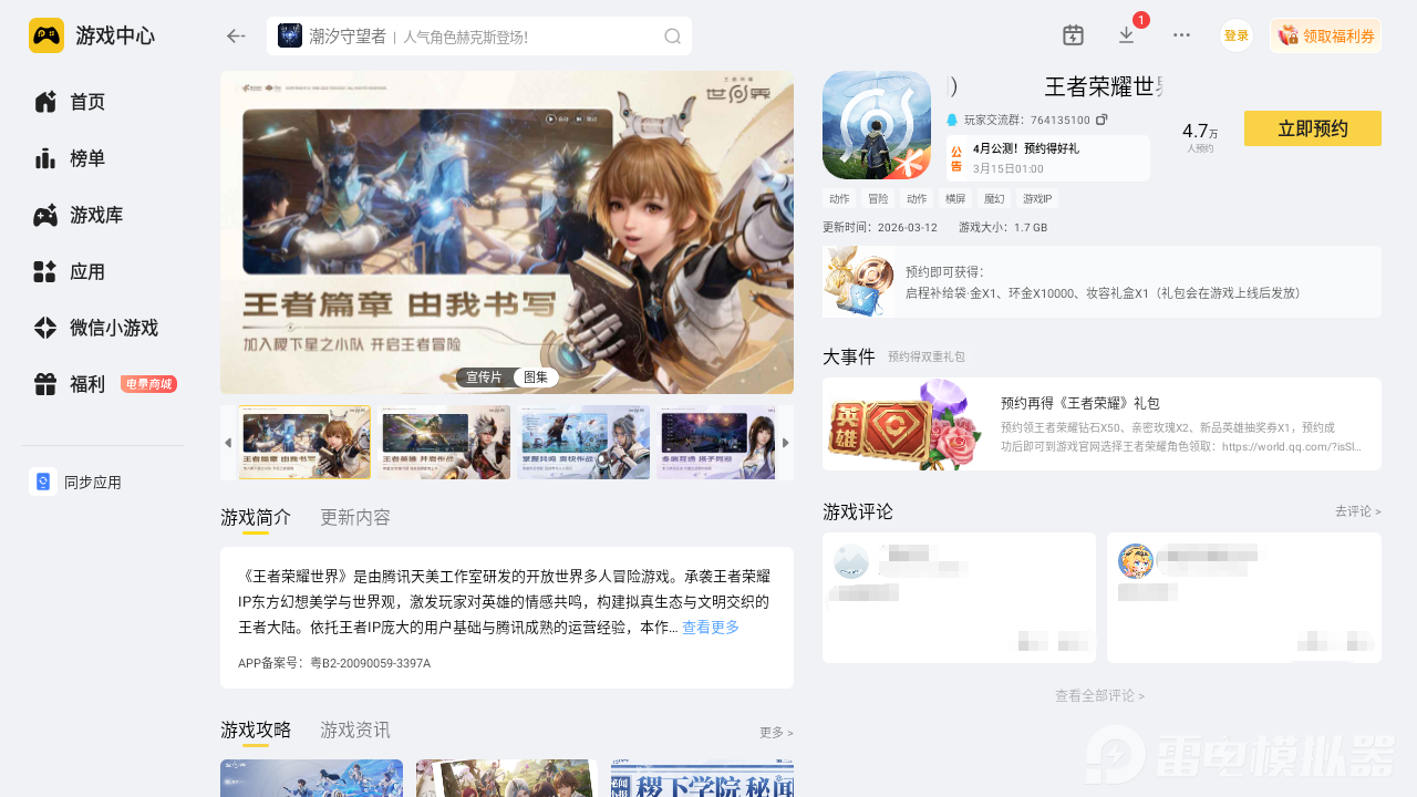 为了能让玩家到时候得到一个不错的体验,尤其是能去快速的了解各类一手资讯和动态消息,小编的建议是去选择雷电模拟器来预约,软件支持超多不同手游的体验,而且电脑运行的话,不论是画面还是操作优势都是很明显的。