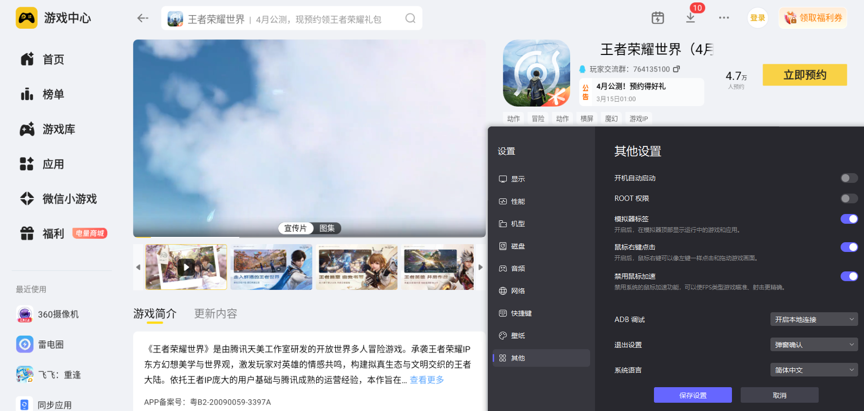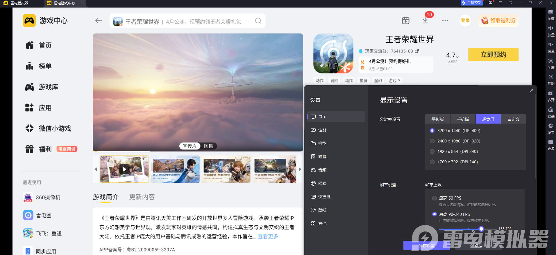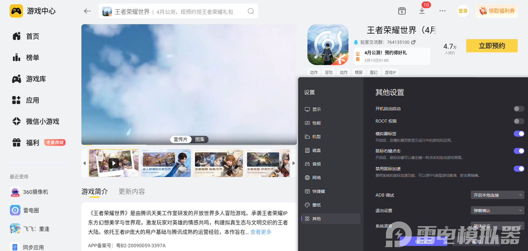 二、雷电模拟器玩《王者荣耀世界》的优势