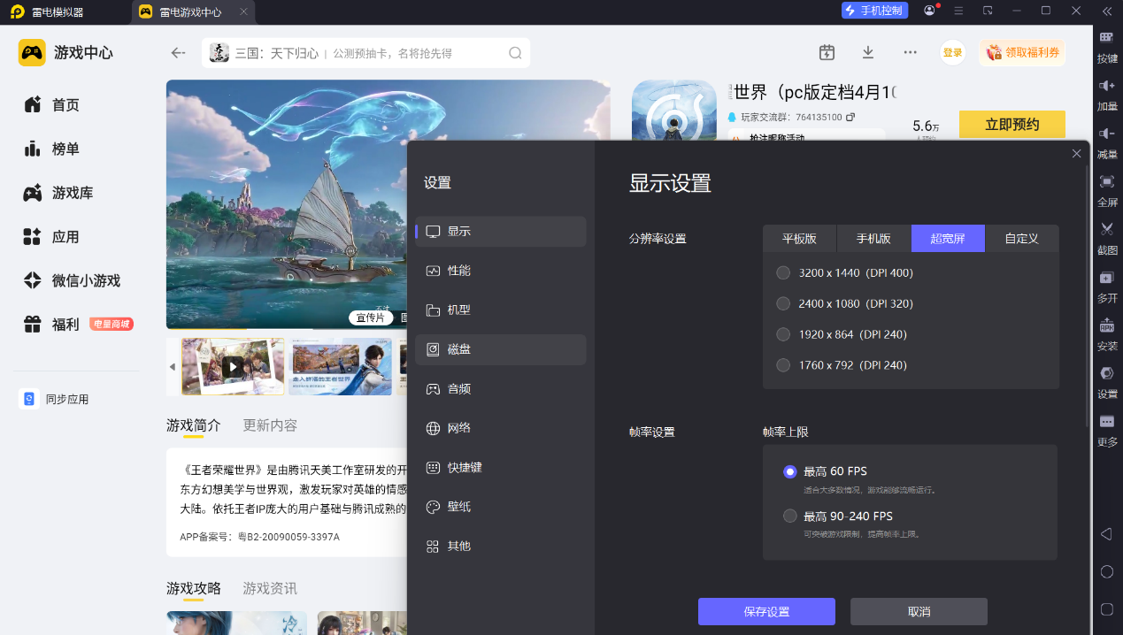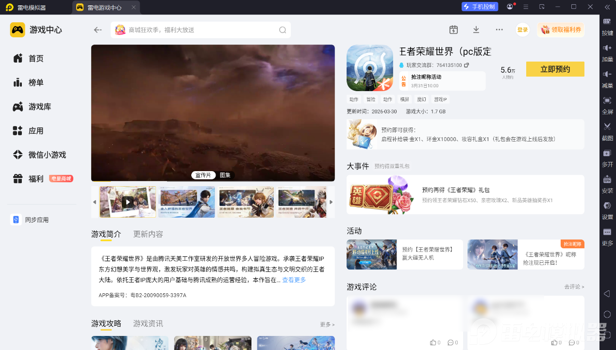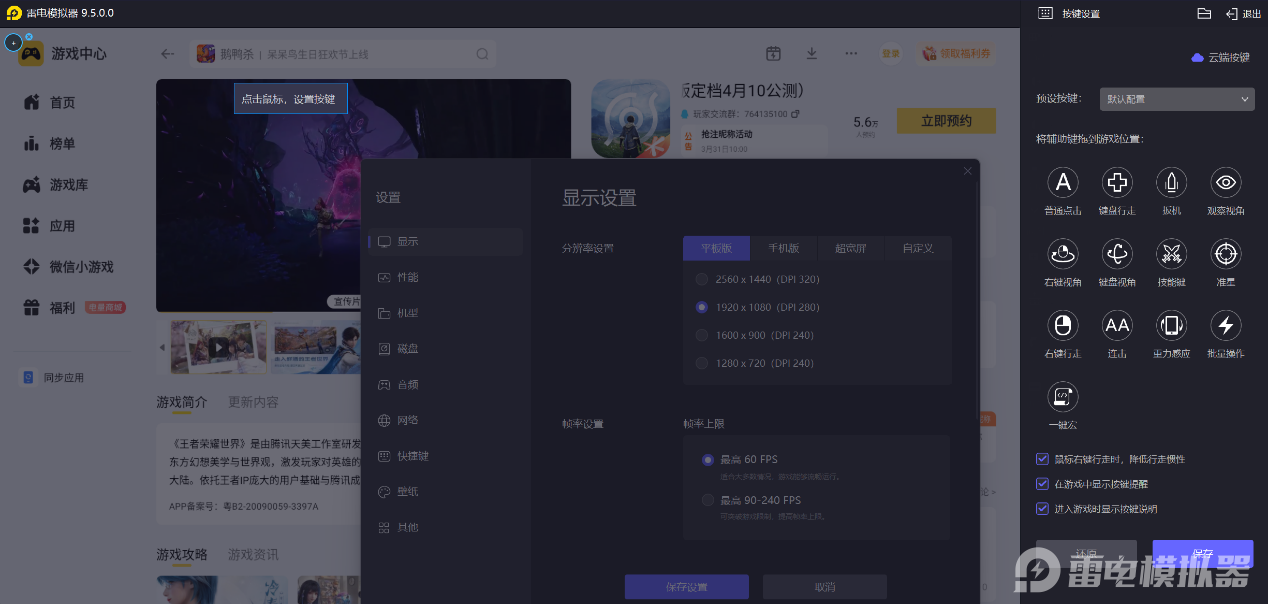 用雷电模拟器玩王者荣耀世界电脑版更优选