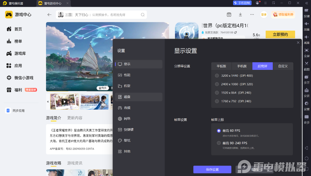 想要体验王者荣耀世界捏脸的完整乐趣,雷电模拟器的超宽屏模式就有着十分明显优势。它的超宽屏可以展示更多角色立绘与建模细节,捏脸时能清晰看到五官微调效果,避免小屏看不清线条的问题。此外战斗与探索场景视野也会更开阔,不会被UI遮挡画面,搭配165稳定刷新帧率,画面流畅细腻,无论是欣赏角色外观还是进行冒险,都能获得更沉浸的视觉体验。