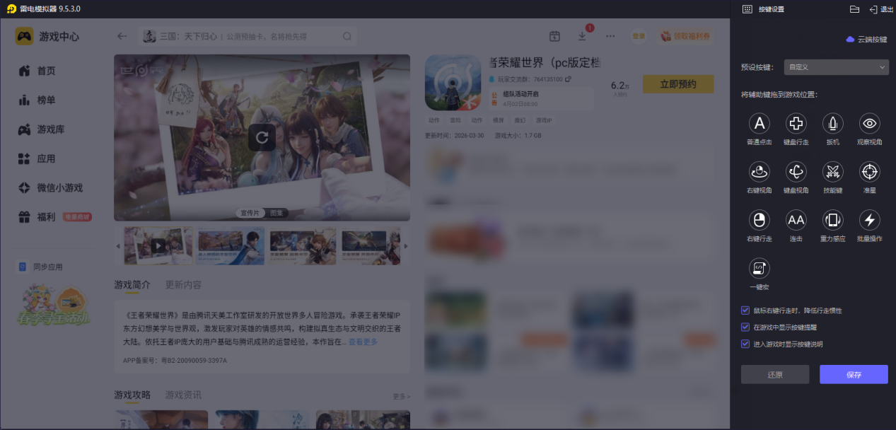 雷电模拟器——王者荣耀世界电脑版的好帮手