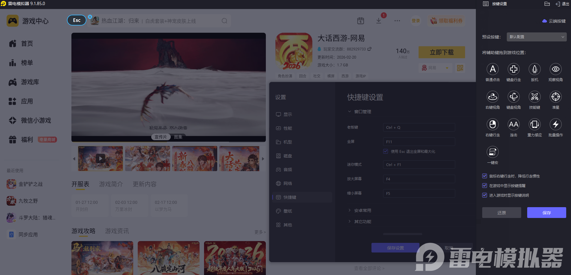 雷电模拟器的操作体验也格外贴心,彻底告别手机触屏的不便。它支持键盘和鼠标自定义操控,玩家可以根据自己的使用习惯设置按键,角色移动、界面点击、技能释放都更精准快捷,不会出现误触的情况。做日常任务、打副本战斗时操作更流畅,上手简单还能提升游戏效率,长时间玩也不会觉得手腕酸痛。