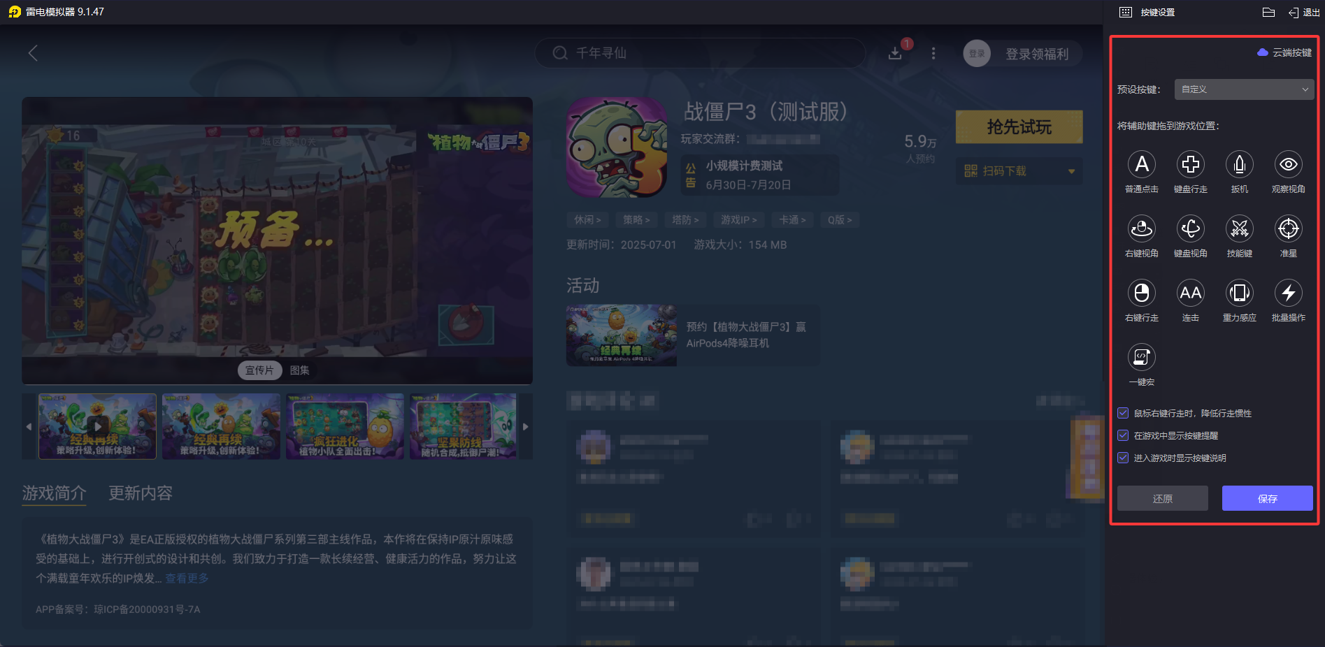 通过雷电模拟器,玩家可在电脑上享受高清画质、稳定帧率的植物大战僵尸3模拟器体验,告别手机小屏限制。