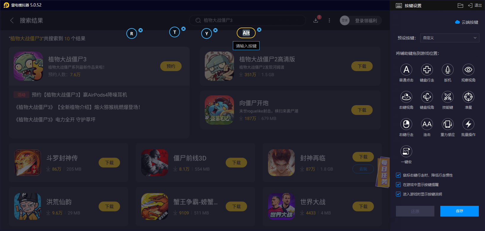 其实优先提升感觉植物属性还是非常重要的,玩家更是能主动尝试不同的组合,尤其是在面对高耐久的对手,而想要让实际的塔防表现更加的出色,那么大家是能考虑去打开雷电模拟器帮助自己的,该工具的自定义按键能让用户去针对喜欢的键盘位置设定快捷键,这样各位也就不用担心自身会有操作方面的失误,对于一些常用的植物等,这是能快速进行布局,更是能通过鼠标点击的方式来收集阳光,这个可比触碰操控便捷许多哦。