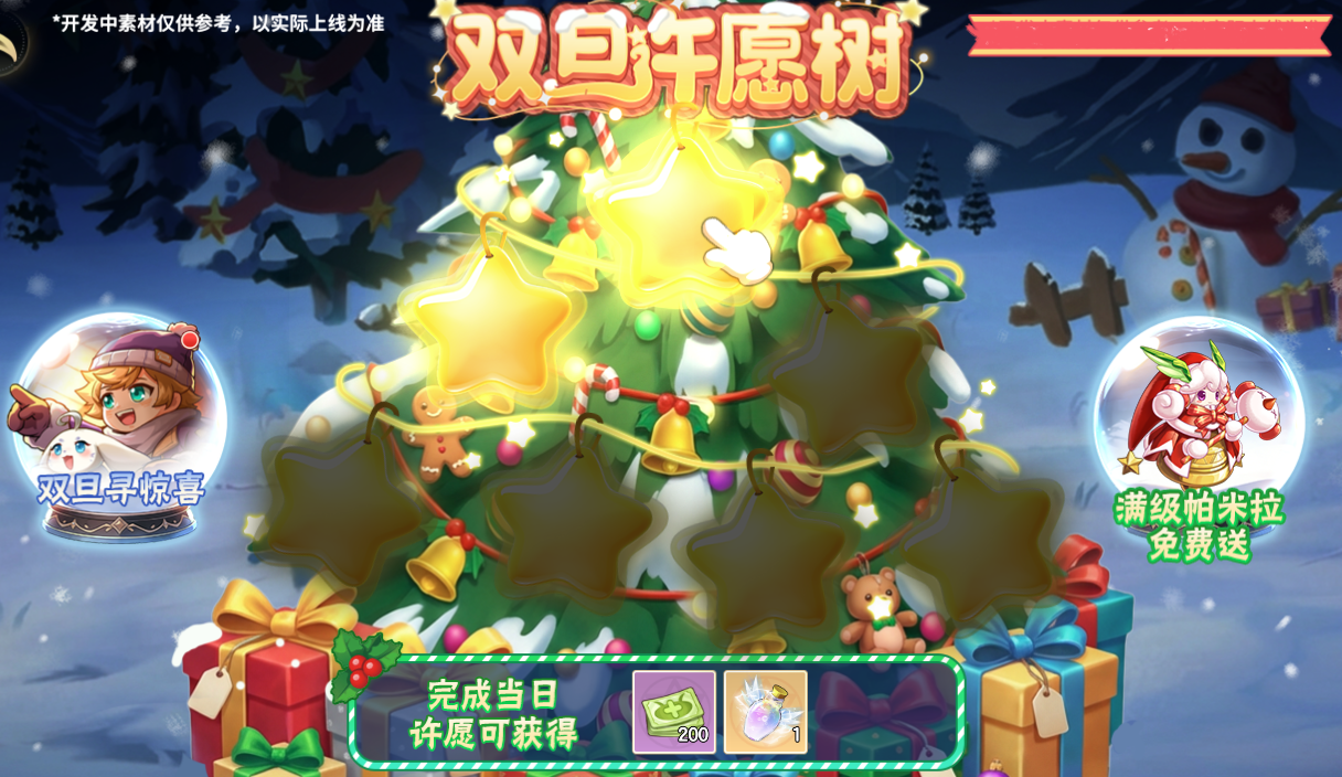 雪花悄然落下,葱郁的许愿树在星夜中发光。精灵帕米拉与树梢的礼物,都在期待一个心愿、一次触摸。快与伙伴们共同许下心愿,一起拆开这份属于冬雪节日的限定快乐吧!