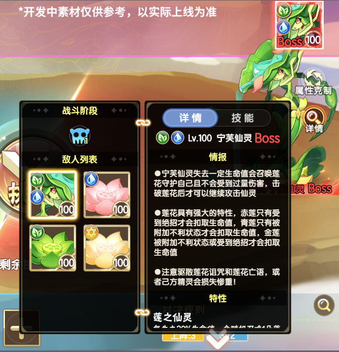 2、优化远古BOSS、龙之谷BOSS战斗页面的信息展示,可查看更为详细的精灵情报,如下图: