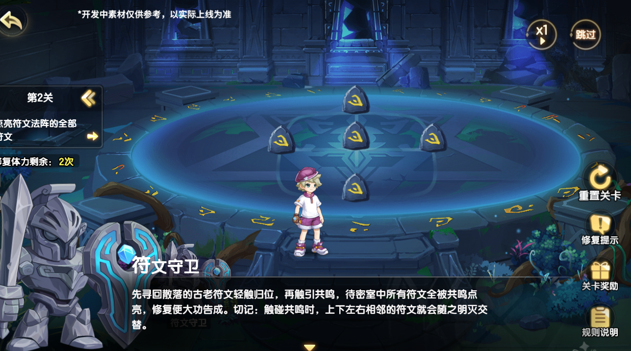 符文密室现世,传来千年守卫的呼唤,法阵力量衰微,急需小西普的帮助。收集并点亮法阵中的符文,符文之间相互共鸣,上下左右相邻的符文会因为彼此的变化明灭交替,动用聪明才智,修复符文密室!